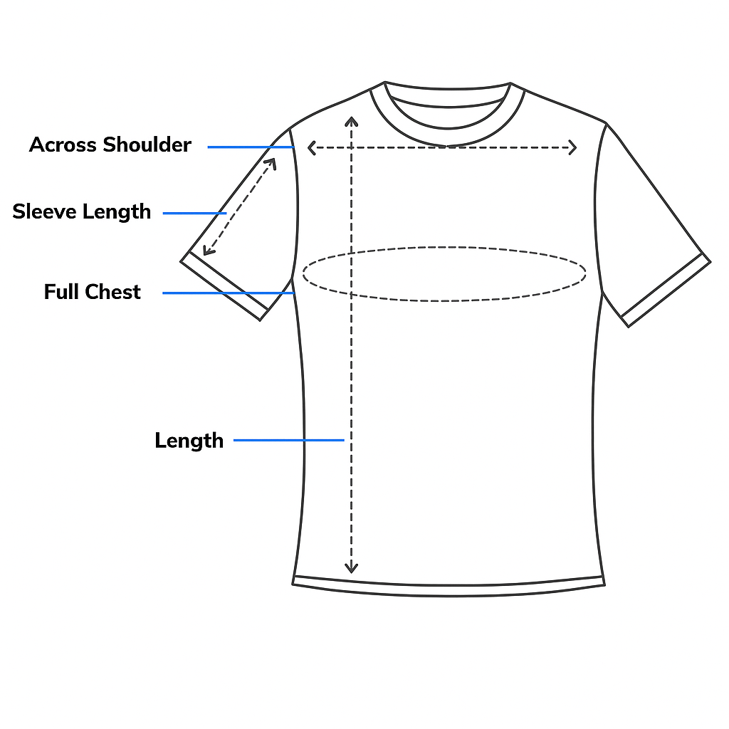 Refer to the photos for T-shirt for visual and detailed size chart. For reference, the model in the picture is 5 ft 6" and is wearing a medium-sized T-shirt.