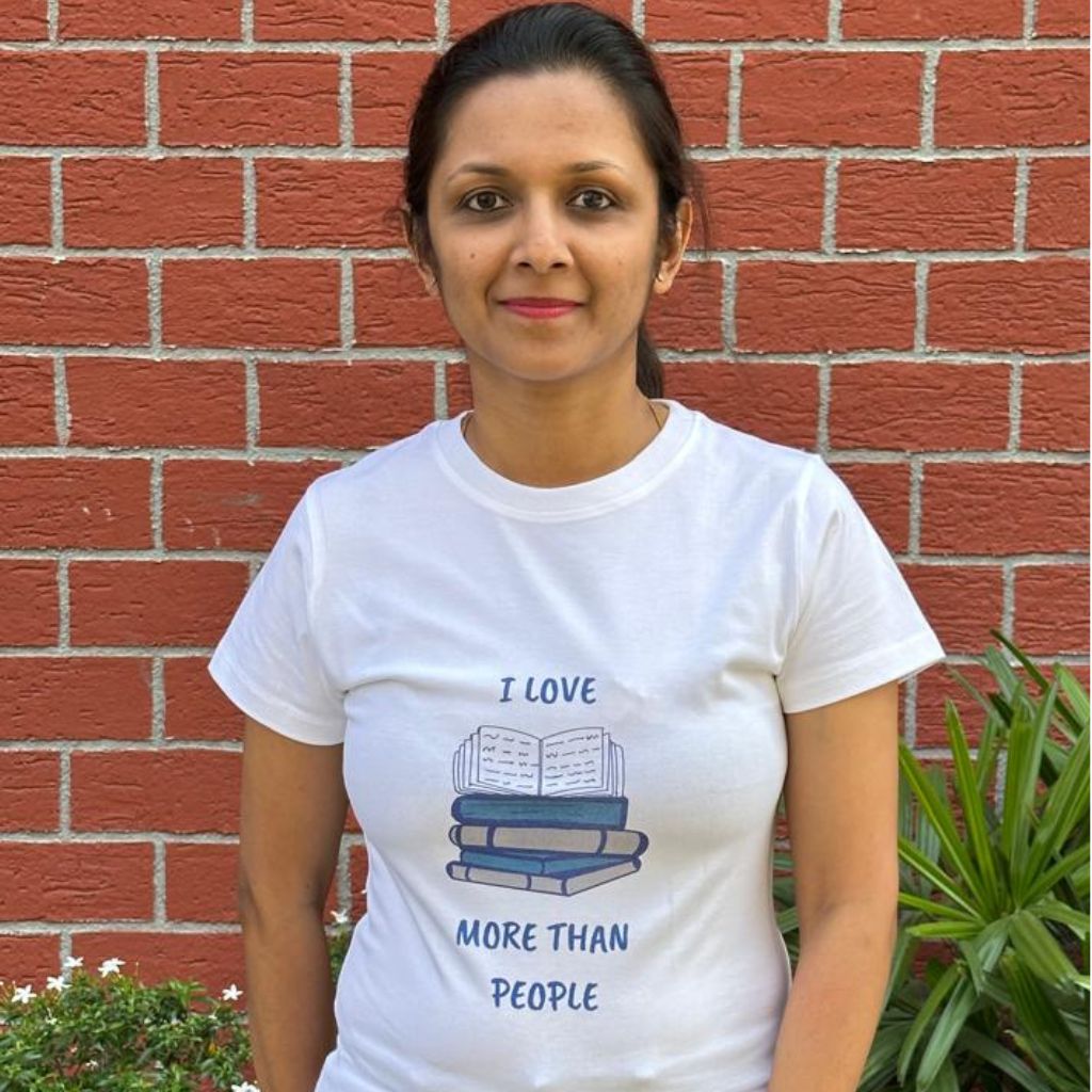 Printed Ladies T-Shirt (White) - 'I Love Books more than People'