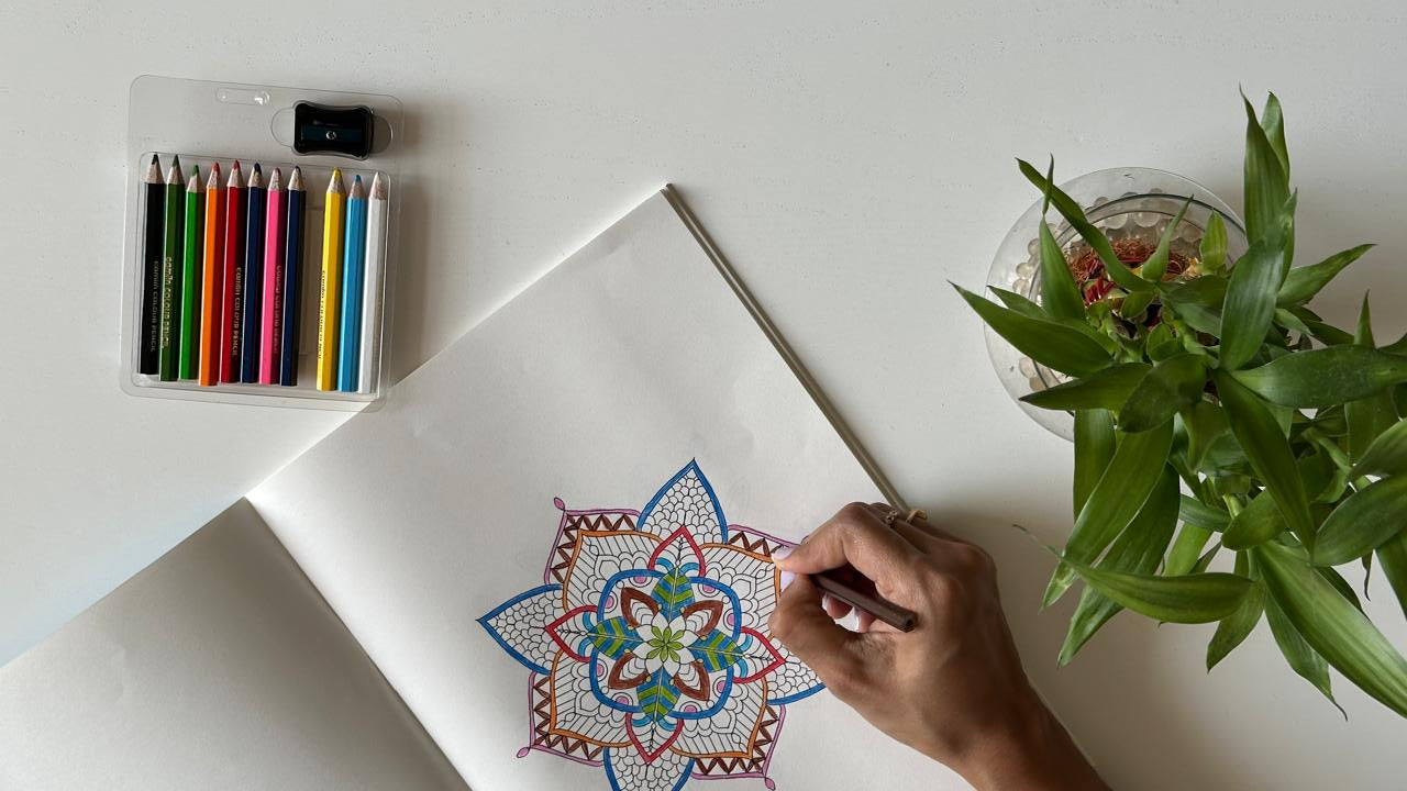 Slow down time with our Coloring books featuring intricate Mandala designs. Perfect for adults and kids alike. Comes with a complimentary set of color pencils.