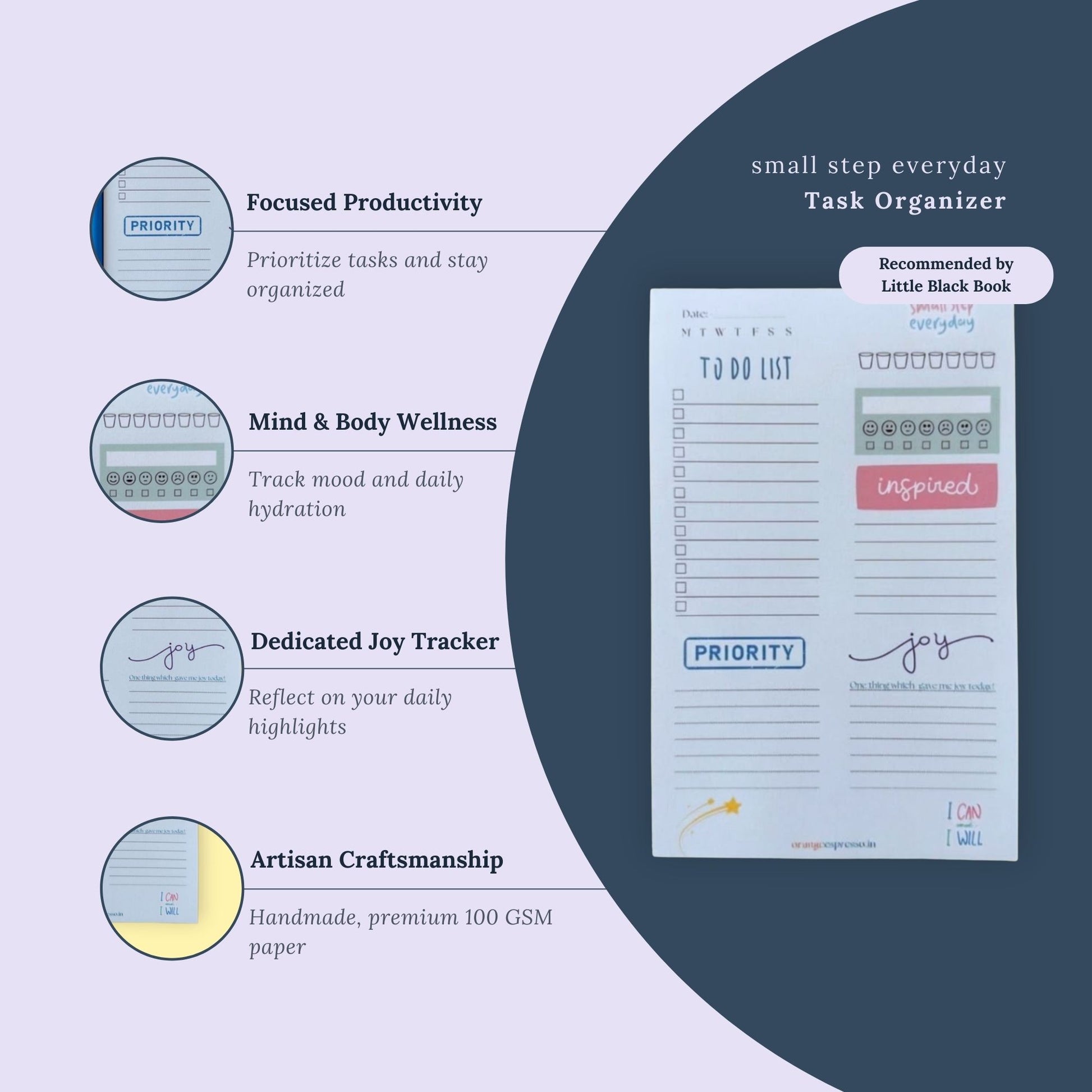 Stay focused and feel good while organizing your day with our handmade ‘small step everyday’ Task Organizer.