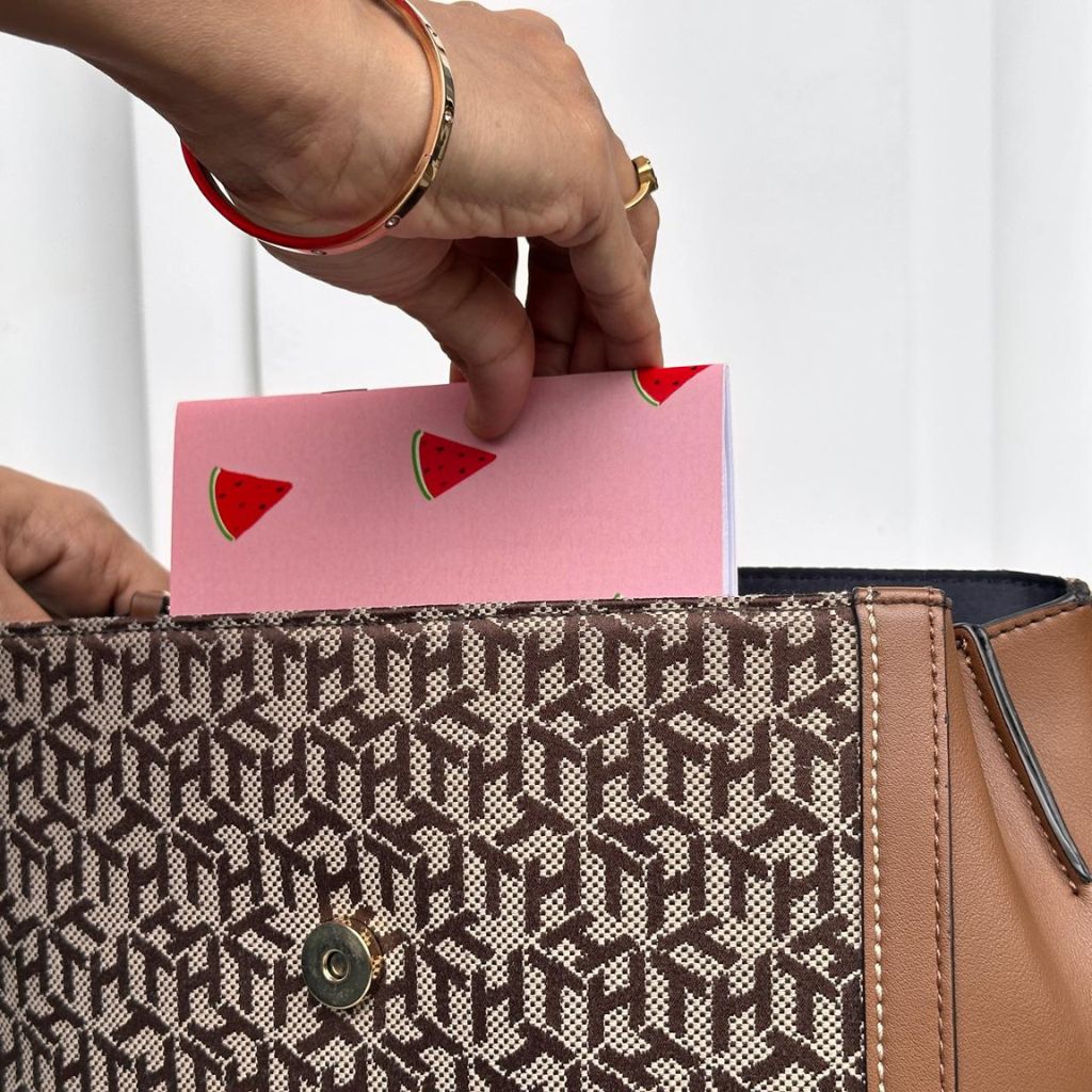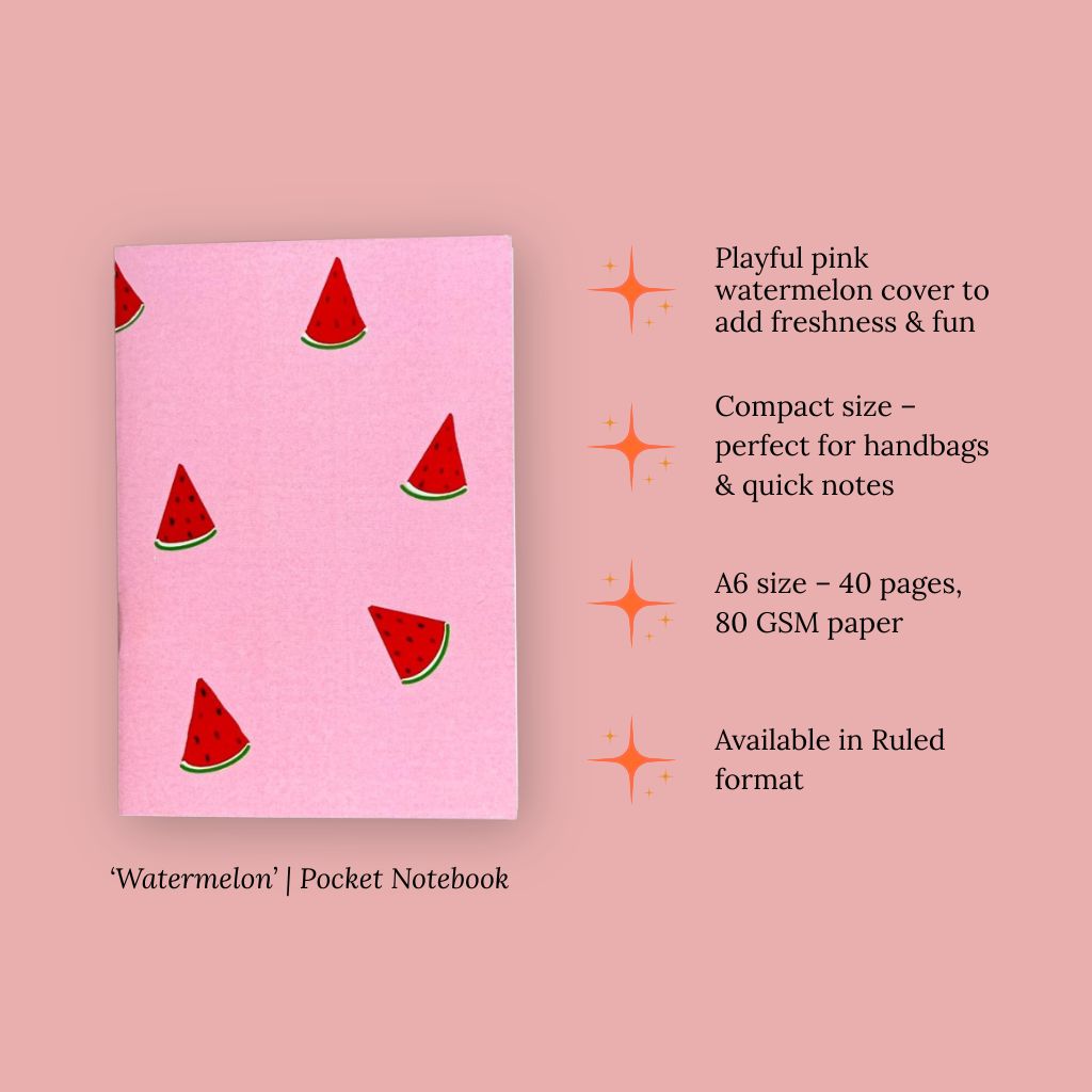 Capture quick notes and bright ideas on-the-go with this cheerful pocket-sized notebook. Featuring a fun 'Watermelon' pink design, it’s a playful yet practical companion for busy days and spontaneous thoughts.