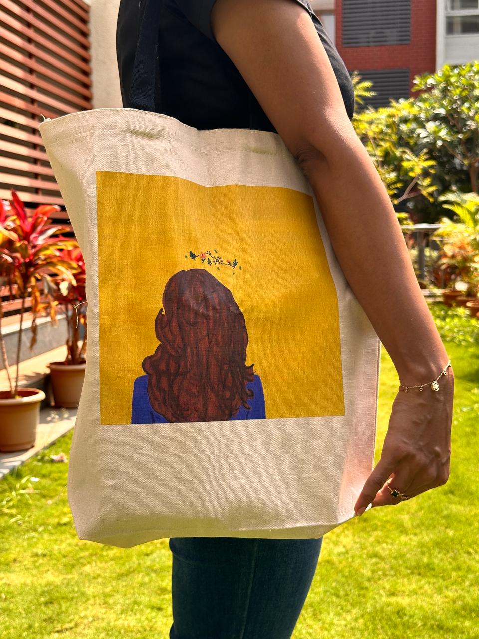 Sturdy Canvas Tote bag with a beautiful 'Thinking Girl' design based on an original artwork. Comes with an inner pouch for keeping a mobile/small purse/pocket notebook etc.
