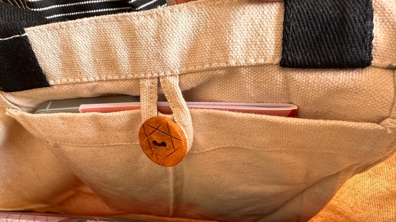 Make a statement with our Canvas Tote Bag featuring the soulful ‘Thinking Girl’ artwork — an original painting by our designer. Thoughtfully crafted from durable canvas, this tote is both expressive and practical. It includes a handy inner pouch with a decorative button, ideal for your phone, notebook, or other essentials. A perfect blend of art, calm, and everyday function.