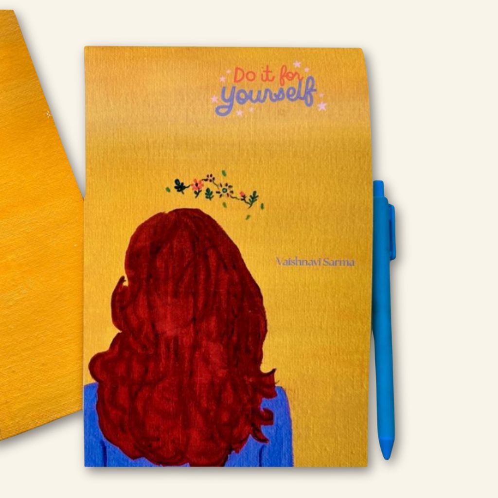 Enter the ‘Do It for Yourself’ Wellness Tracker, a beautifully handmade 50-page journal designed to help you stay in touch with your physical and mental wellness every day. Track your meals, water intake, step count, triggers, daily gratitude, and notes to self — all in one thoughtfully laid-out space.